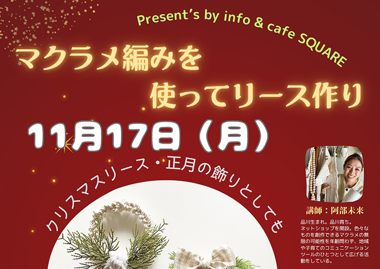 イベントカレンダーinfo&cafe SQUARE「マクラメ編みを使ってリース作り」