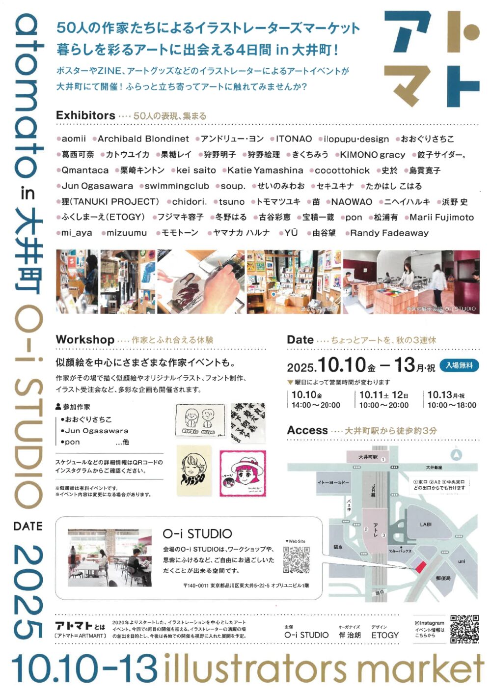 2025年10月10日(土)~10月13日(月祝)、大井町「O-i STUDIO」(オーイスタジオ)にて、「atomato(アトマト)in 大井町」が開催されます。
