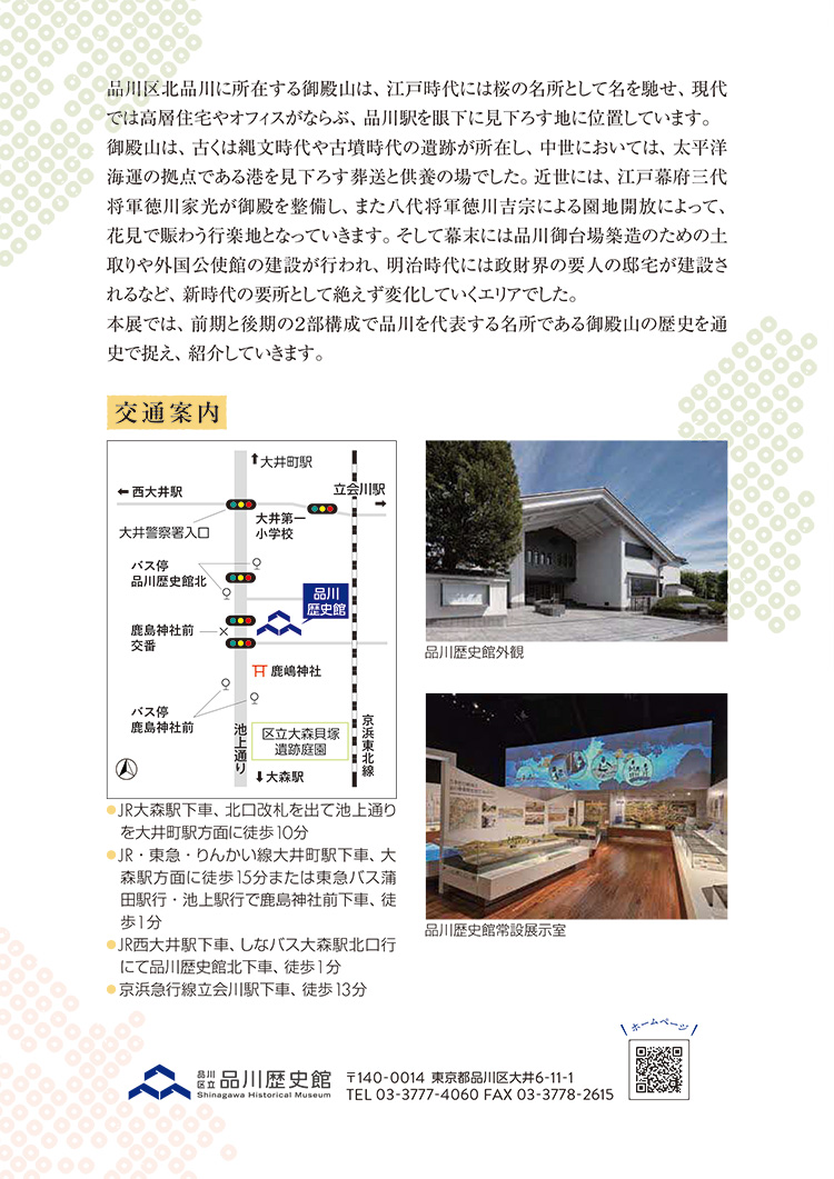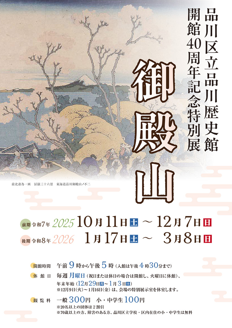 2025年10月11日(土)より、品川歴史館 開館40周年記念特別展「御殿山」が開催されます。