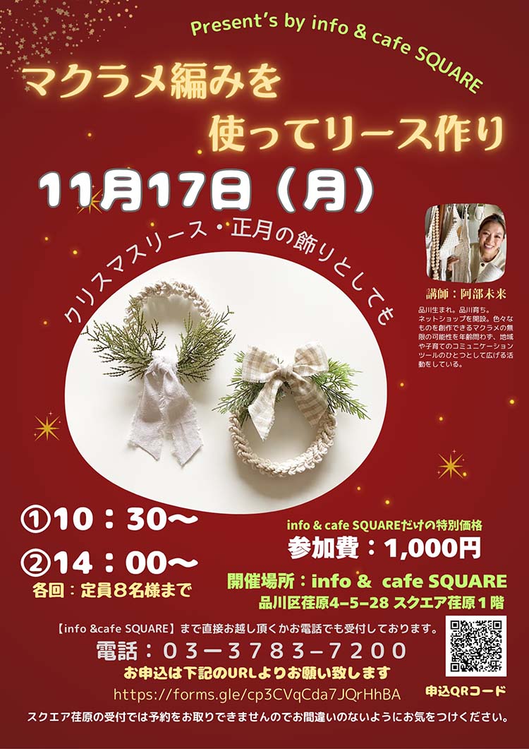 info&cafe SQUARE「マクラメ編みを使ってリース作り」