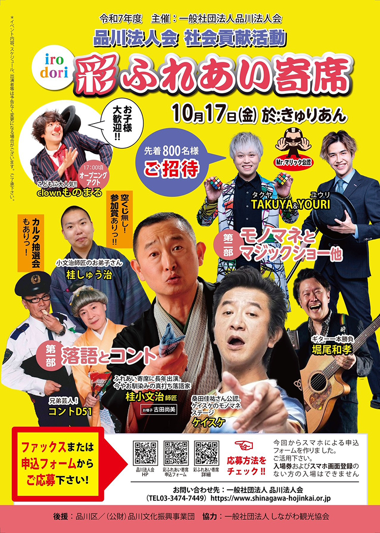 2025年10月17日(金)、きゅりあんにて「彩ふれあい寄席」が開催されます。