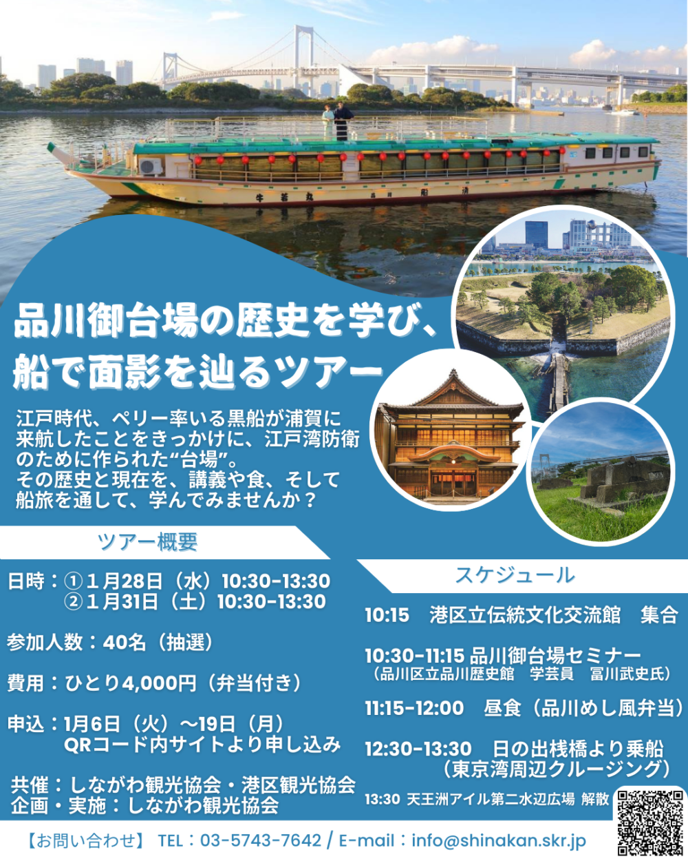 2026年1月28日(水)、31日(土)しながわ観光協会と港区観光協会は、「品川御台場の歴史を学び、船で面影を辿るツアー」を開催いたします。