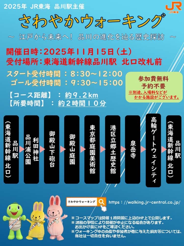 2025年11月15日(土)、JR東海 品川駅発「さわやかウォーキング」が開催されます。