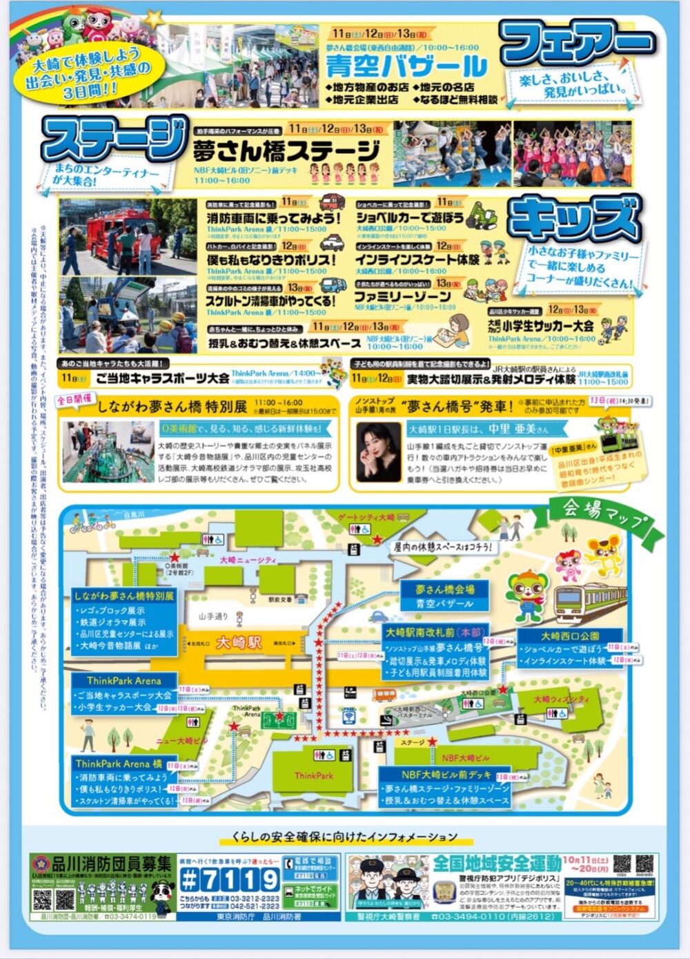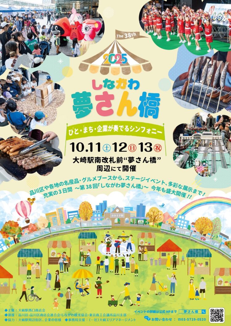 2025年10月11日(土)・12日(日)・13日(月祝)、大崎駅 南口東西自由通路及び大崎駅周辺にて「第38回 しながわ夢さん橋2025」が開催されます。