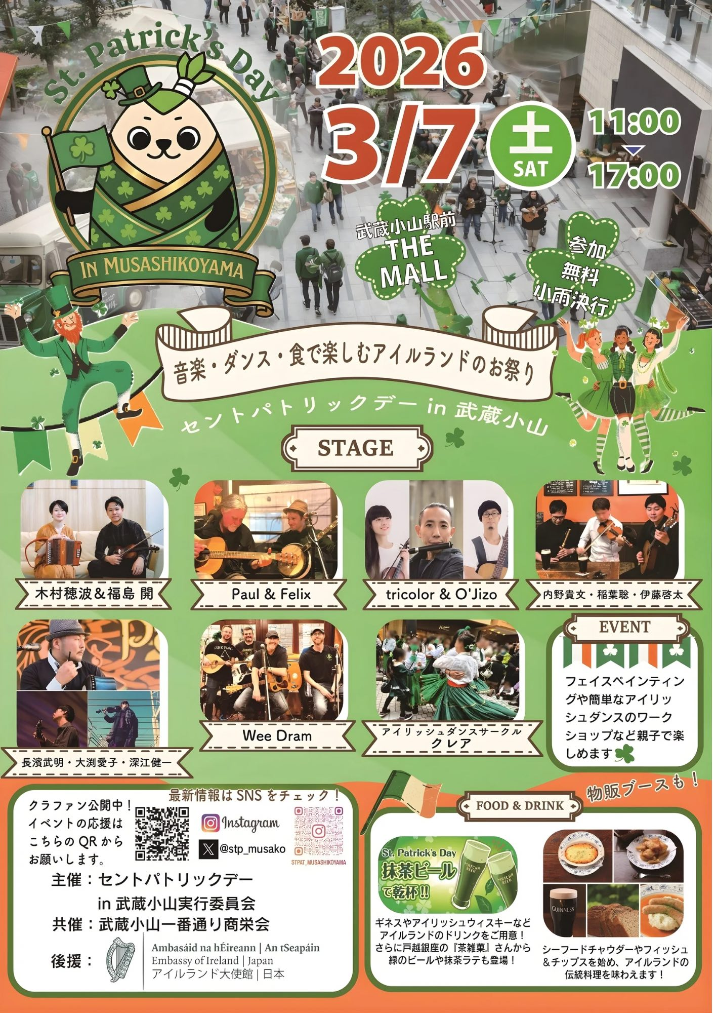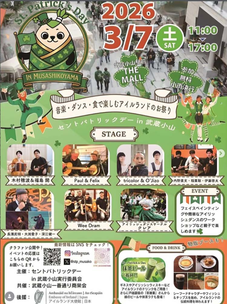 2026年3月7日(土)、武蔵小山駅前のTHE MALL(ザ・モール)にて「セントパトリックデー in 武蔵小山」が開催されます。