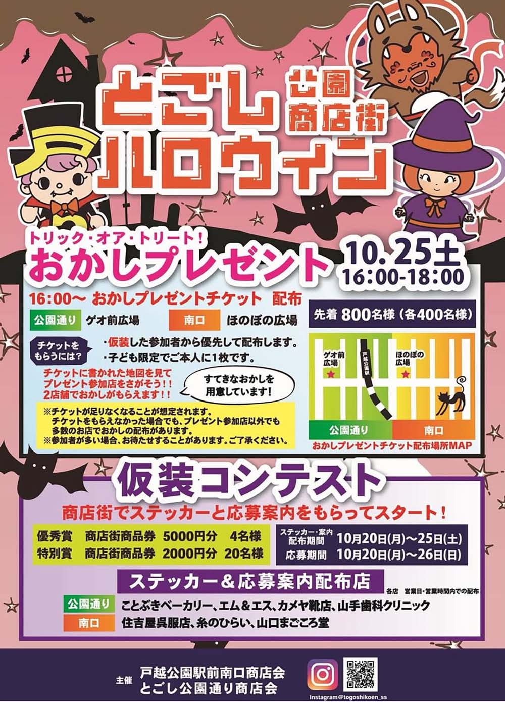 2025年10月25日(土)、「とごし公園商店街 ハロウィン」が開催されます。主催は、とごし公園通り商店会・戸越公園駅前南口商店会。