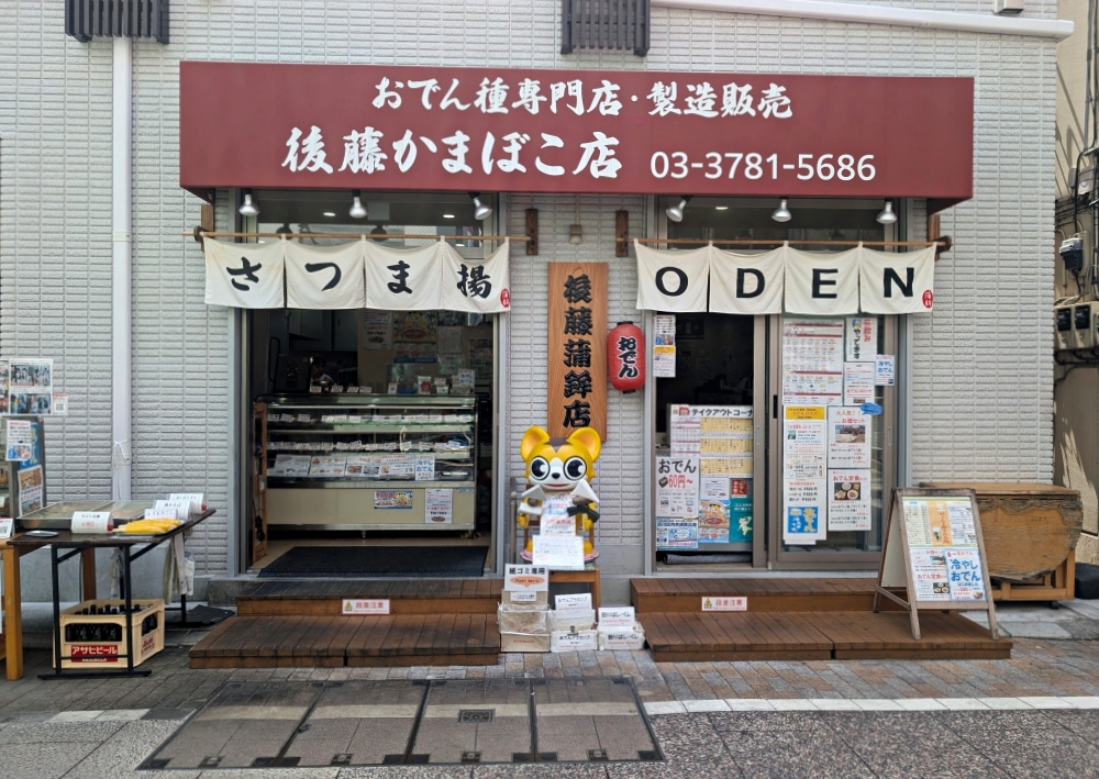 細かく刻んだおでんの具、じゃがいも、大根が入った「おでんコロッケ」を販売しているのが、こちらの「後藤蒲鉾店」。創業60年以上の歴史を持つ人気店です。さつま揚げやおでん、揚げ物を販売し、テイクアウトやイートインにも対応しています。