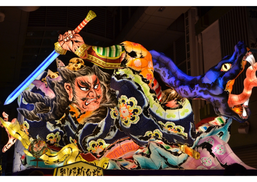 現在の福島県須賀川市長沼町と交流があった縁で始まった同イベント。当初は長沼町のねぶたを譲り受けていましたが、その後は青森県黒石市の観光大使と知り合った縁で、黒石市のねぶたをメインに取り入れています。