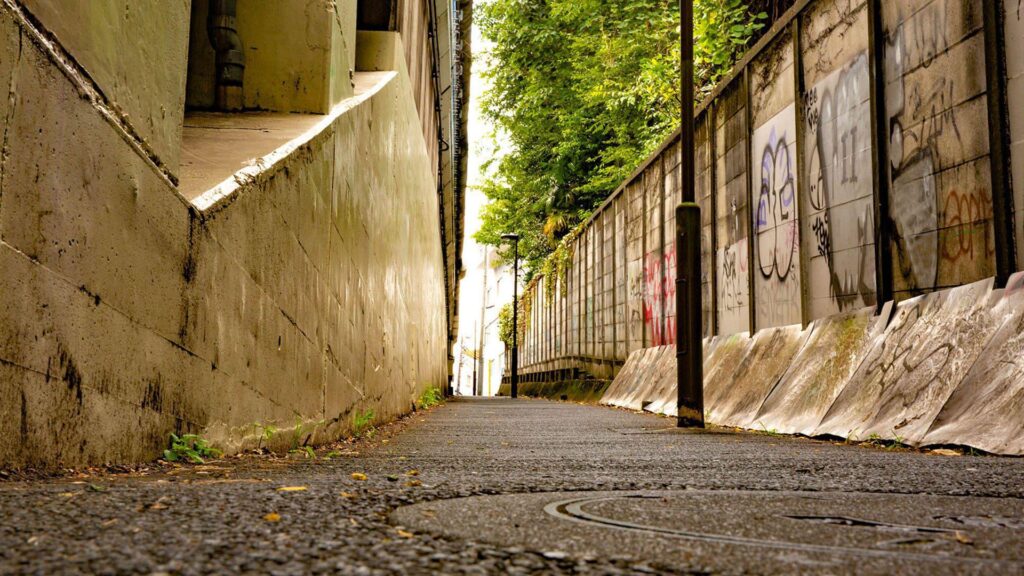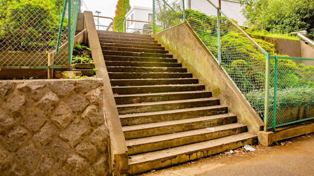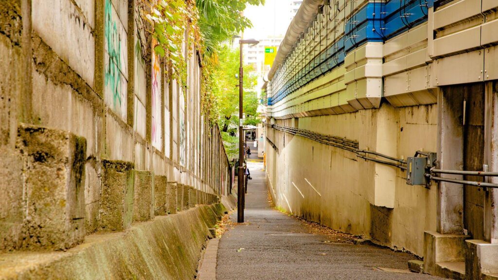 首都高目黒線高架下1 2025 5/13 2018.11.15 首都高目黒線の高架下に一般道(都道418号)が走り、その西側の測道は歩行者や自転車の道になっている。このあたりは路地風の小径で、階段もある。首都高も一般道も壁で隔てられているので騒音も気にならない。 Date :2018/11/15 Address :品川区上大崎2丁目3 #大崎地区 #高架下 #坂道 #階段 #街並み・路地 #路地 #サスペンス × BACK