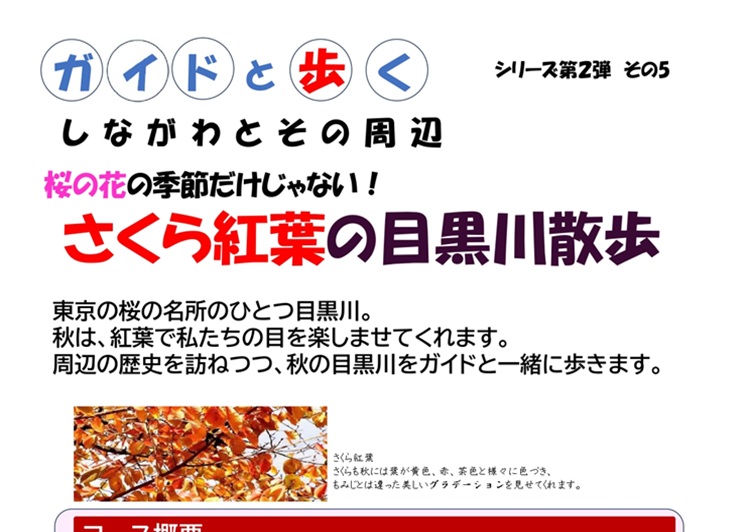 イベントカレンダーガイドしながわ 「ガイドと歩く さくら紅葉の目黒川散歩」